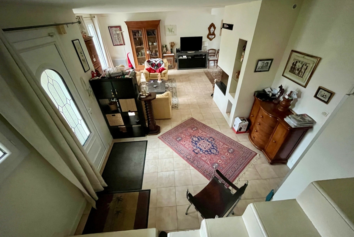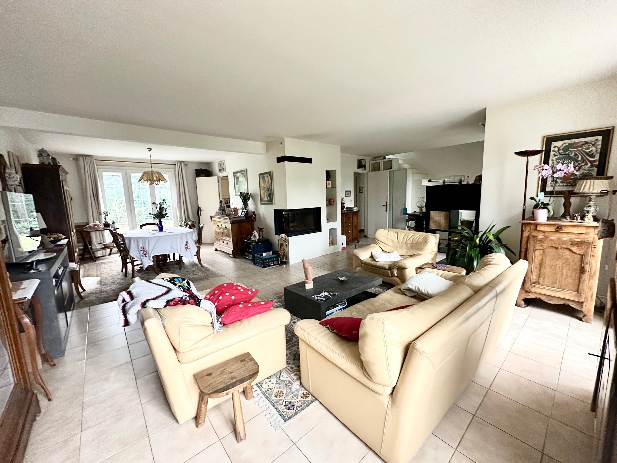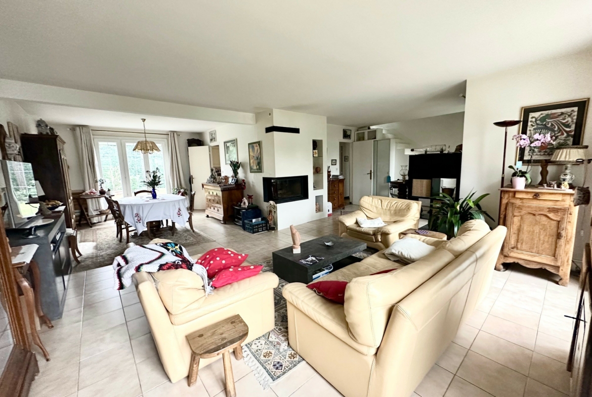 1 Double séjour traversant d’environ 58 m² ouvert par des baies vitrées sur un jardin clos et arboré,