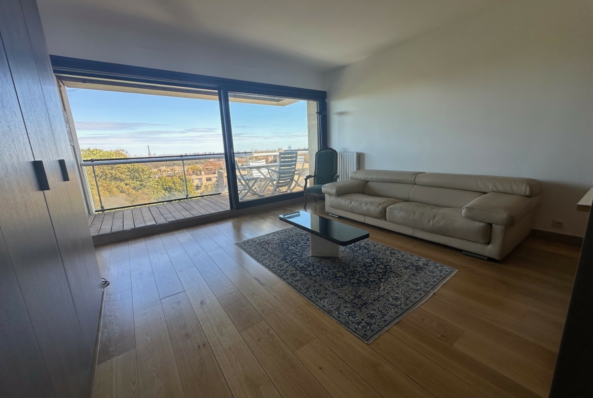 Dans l’une des résidences de standing les plus prisées de Saint Cloud, au 4 ème étage avec terrasse et vue splendide sur la Tour Eiffel, bel appartement loué en Meublé très fonctionnel de 65 m².