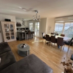 • 1 Double séjour traversant Est/Ouest d’environ 45m² ouvert par des baies vitrées sur un jardin clos et arboré,